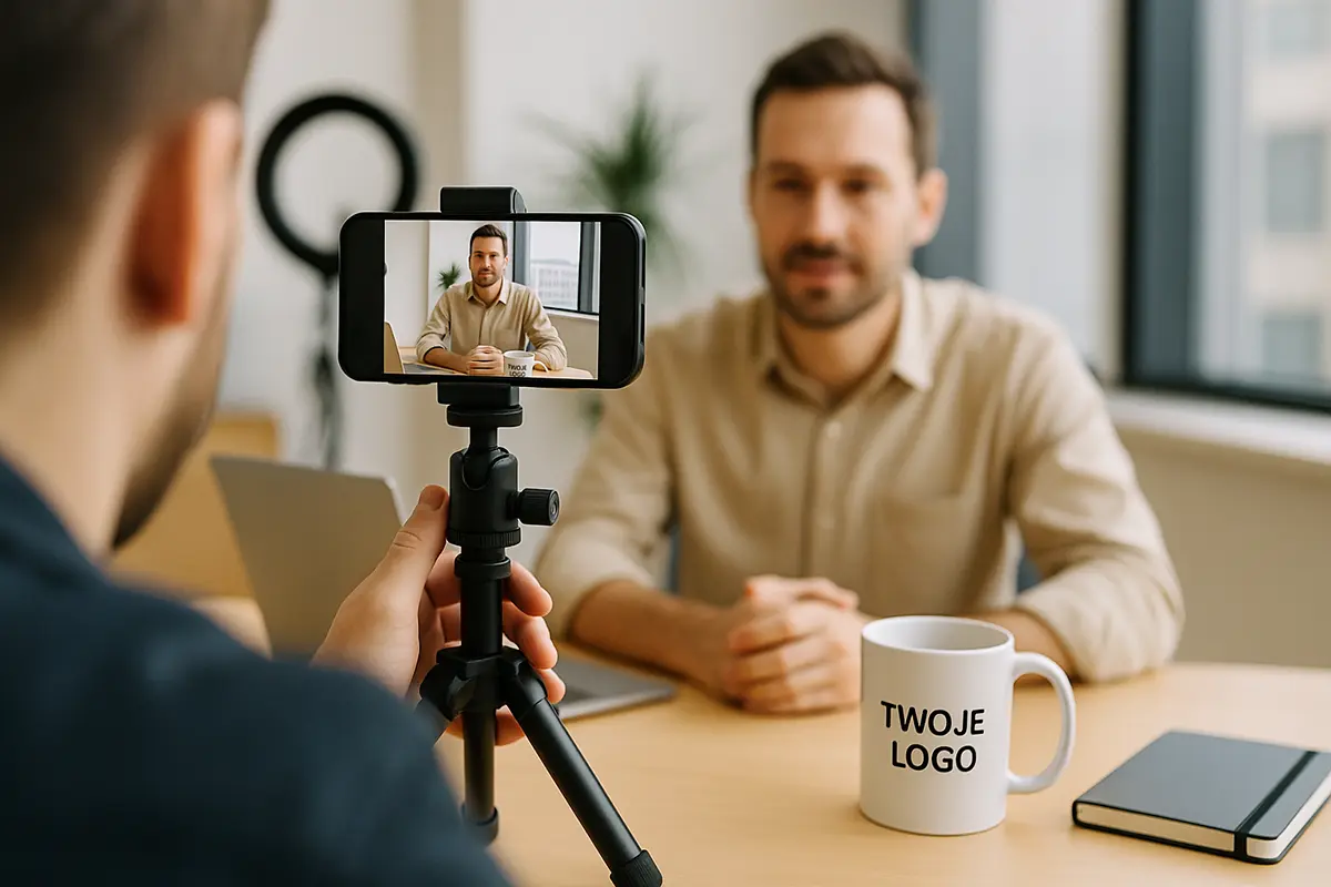 Pierwszym, bardzo praktycznym nośnikiem może być po prostu kubek z logo. Do znaku dodaj krótki claim albo wartości firmy — w biurze, na spotkaniach czy w materiałach wideo taki drobiazg pracuje codziennie na spójność marki. To także sygnał dbałości o kulturę organizacyjną, co dziś ma realne znaczenie dla klientów i partnerów.