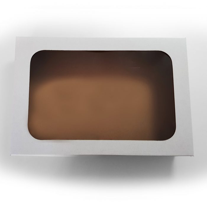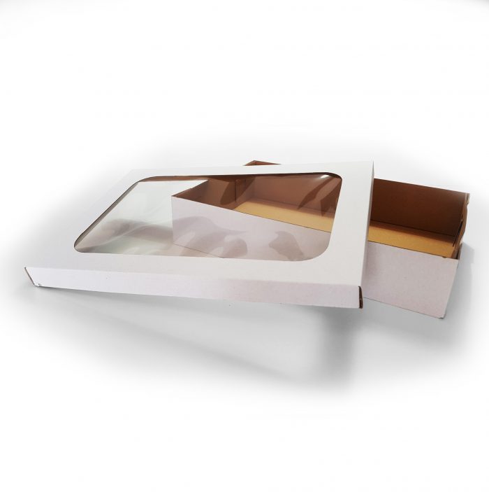 Sztywne, białe pudełko prezentowe z okienkiem. Wykonane z gładkiej i grubej tektury. Mieści do 3 koszulek (lub innych podobnych rozmiarowo produktów) albo 1 bluzę.