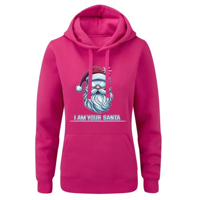 Bluza damska z kapturem z grafiką Andrzeja Warty „I AM YOUR SANTA” to świąteczny motyw z zadziornym twistem. W centrum brodaty Mikołaj w okularach przeciwsłonecznych i czapce, z charakterystycznym błyskiem gwiazdki — bardziej rock’n’roll niż grzeczny elf. Lodowy błękit brody kontrastuje z intensywną czerwienią, a komiksowo-plakatowa kreska daje mocny, czytelny z daleka efekt. Napis „I AM YOUR SANTA” domyka kompozycję jak punchline i wywołuje uśmiech od pierwszego spojrzenia. To grafika na świąteczne spotkania, mikołajkowe imprezy i wszędzie tam, gdzie chcesz pokazać dystans i poczucie humoru. Ten motyw znajdziesz również na innych produktach.