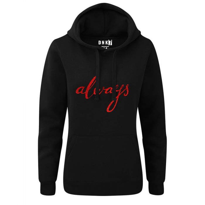 Wyjątkowa bluza dla wyjątkowych kobiet – posiada nadruk z efektem mocno błyszczącego złota lub brokatowej czerwieni – pięknie zmienia odcień w zależności od kąta padania światła.