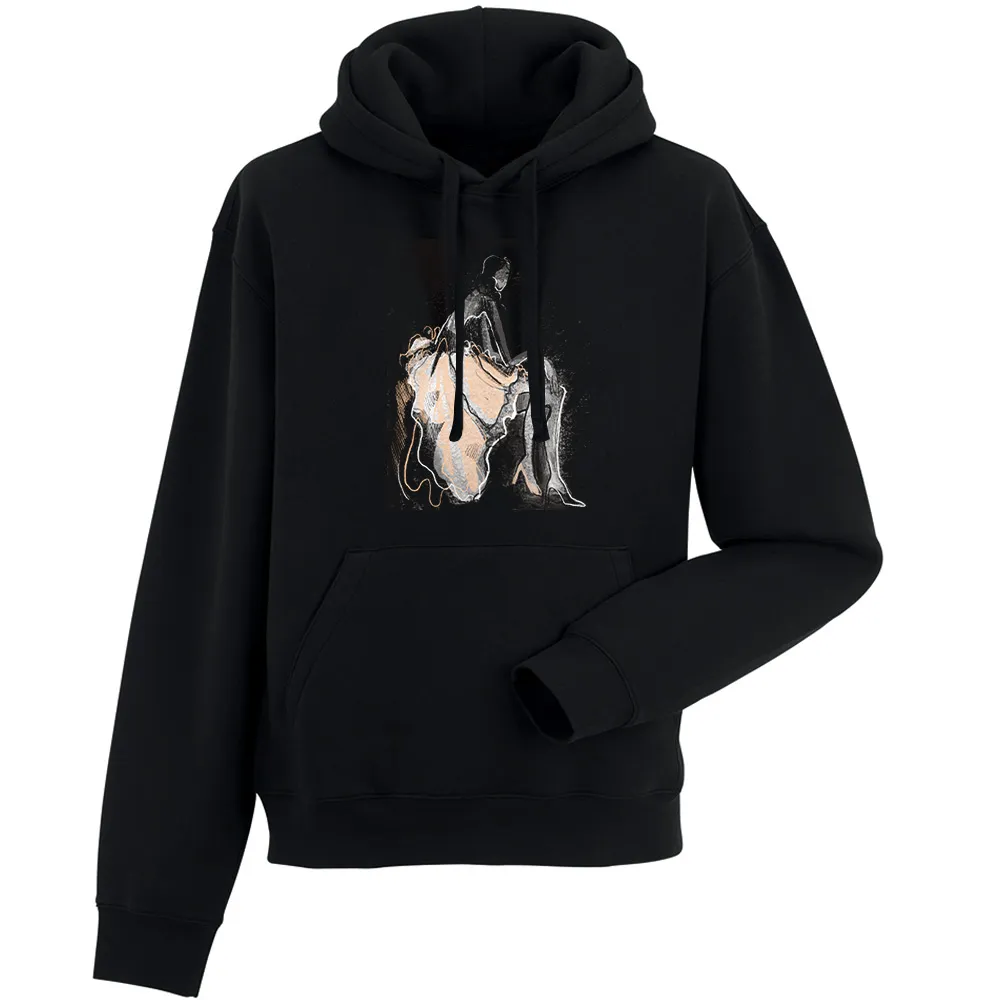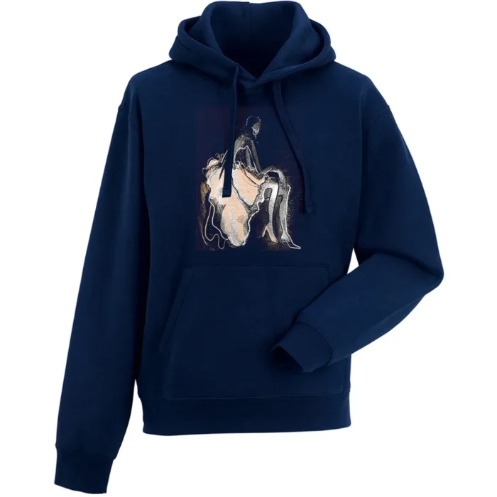 Bluza męska z kapturem z grafiką Eli Góreckiej „Baletnica” to elegancki kadr zatrzymanego ruchu. W centrum smukła sylwetka tancerki w półobrocie — kaligraficzna, dynamiczna kreska „zamraża” moment zawieszenia nad ziemią. Oszczędna paleta i delikatny światłocień budują teatralną głębię, a klarowny kontur nadaje ilustracji plakatową szlachetność. Subtelne detale tutu i pracy rąk prowadzą wzrok po kompozycji, odsłaniając niuanse gestu i rytmu. Na większym formacie bluzy motyw działa jak mini plakat: czytelny z daleka, intrygujący z bliska. Dla miłośników tańca, sztuki i minimalistycznej estetyki — gdy chcesz dodać stylizacji finezji bez zbędnych słów.