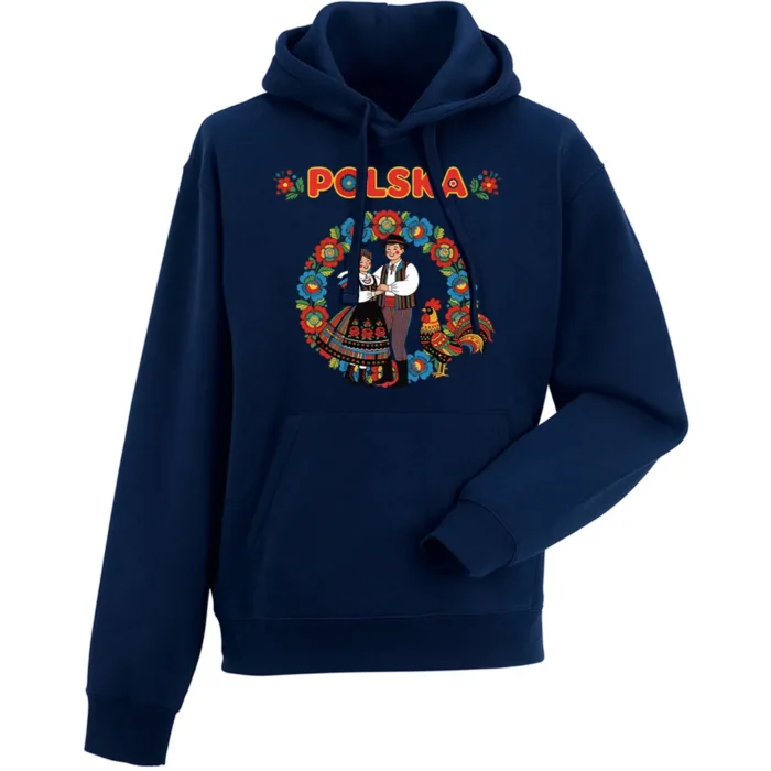 Bluza męska z kapturem „Folk Polska” to minimalizm z ludowym twistem — miejski fason z autorską grafiką Barbary Holda inspirowaną polskimi wycinankami. Czysta linia i rytm kwiatowych detali tworzą nowoczesny, graficzny motyw, który przyciąga wzrok bez krzyczenia. Klasyczny krój, kaptur i kieszeń kangurka dbają o wygodę od porannej kawy po wieczorny spacer. Subtelne nawiązania do czerwieni i bieli dodają symbolicznego akcentu, a całość świetnie gra z jeansami, joggerami i overshirtem. To dobry wybór do pracy, na miasto i weekend — porządkuje stylizację zamiast ją przytłaczać. Lubisz spójność? Połącz bluzę z koszulką lub torbą w tym samym motywie i stwórz praktyczny, codzienny set.