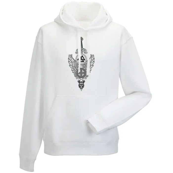 Bluza męska z kapturem z grafiką Andrzeja Warty „Legenda Wojownika” to epicki kadr jak z dawnej sagi. W centrum wyrazista sylwetka bohatera, a wokół niej ornament bitewnych symboli i falujących linii, które opowiadają historię odwagi i honoru. Kontrastowa, „tatuażowa” kreska w połączeniu z plakatową kompozycją daje monumentalny efekt, czytelny z daleka. Z bliska widać gęste cieniowania i mikrodetale — każda rysa i faktura dopowiada kolejny rozdział legendy. Mroczniejszy, graficzny vibe sprawia, że motyw świetnie gra w stylizacjach inspirowanych mitami i fantasy. To bluza na koncert, konwent, planszówkowy wieczór albo po prostu dzień, w którym chcesz dodać swoim outfitom mocy i zdecydowania.