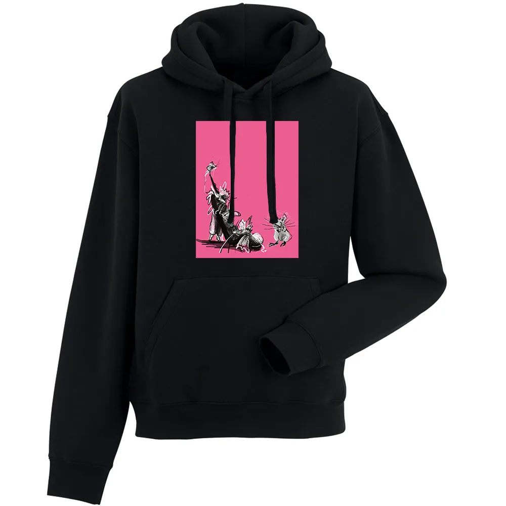 Bluza męska z kapturem z grafiką Eli Góreckiej „Myszy” to lekki, humorystyczny kadr o świetnym rytmie. W centrum zwinne myszki naszkicowane pewną, kaligraficzną kreską — długie ogonki i szybkie linie ruchu nadają scenie tempo. Oszczędna paleta i wyrazisty kontur budują plakatową czytelność, która „łapie” wzrok z daleka. Z bliska widać smaczki rysunku: drobne faktury, przetarcia i migotliwe „whiskers”, które ożywiają ilustrację. Kompozycja prowadzi oko jak mini-animacja — od pierwszego skoku do ostatniego zawinięcia ogonka. Bluza męska z kapturem z grafiką Eli Góreckiej „Myszy” doda stylizacji uśmiechu i odrobiny autoironii na co dzień.