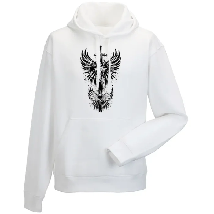 Bluza męska z kapturem „Ojczyzna” to minimalizm z charakterem — miejski fason z autorskim nadrukiem Andrzeja Warty, który wyraża dumę bez patosu. Mocny kontur i oszczędna kompozycja nadają motywowi nowoczesny, graficzny rytm nawiązujący do polskiego dziedzictwa. Miękka dzianina 80% bawełna / 20% poliester o gramaturze 280 g/m²zapewnia wygodę i dobre trzymanie formy. Regulowany kaptur i kieszeń kangurka sprawiają, że bluza sprawdza się na chłodniejsze poranki, do pracy i na weekend. Klasyczny krój dobrze układa się na sylwetce — świetnie gra z jeansami, joggerami i overshirtem, ale równie dobrze wygląda solo. Lubisz spójność? Połącz bluzę z innymi produktami z kolekcji Andrzeja Warty i stwórz praktyczny, codzienny set.