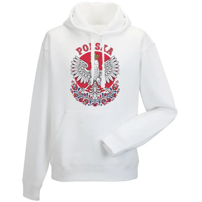 Bluza męska z kapturem „Orzeł Polski” to minimalizm z charakterem — miejski fason z autorską grafiką Barbary Holda, łączącą współczesną prostotę z klasycznym symbolem. Czysta linia, mocny kontur i oszczędny kontrast nadają motywowi nowoczesny, graficzny rytm, który wyraża dumę bez patosu. Klasyczny męski krój, regulowany kaptur i kieszeń kangurka zapewniają wygodę w chłodniejsze dni. Bluza świetnie gra z jeansami, joggerami i overshirtem, a równie dobrze wygląda solo. To dobry wybór do pracy, na miasto i weekendowe wyjścia — dodaje charakteru, nie przytłaczając stylizacji. Lubisz spójność — połącz ją z koszulką lub torbą w tym samym motywie i stwórz praktyczny, codzienny set.