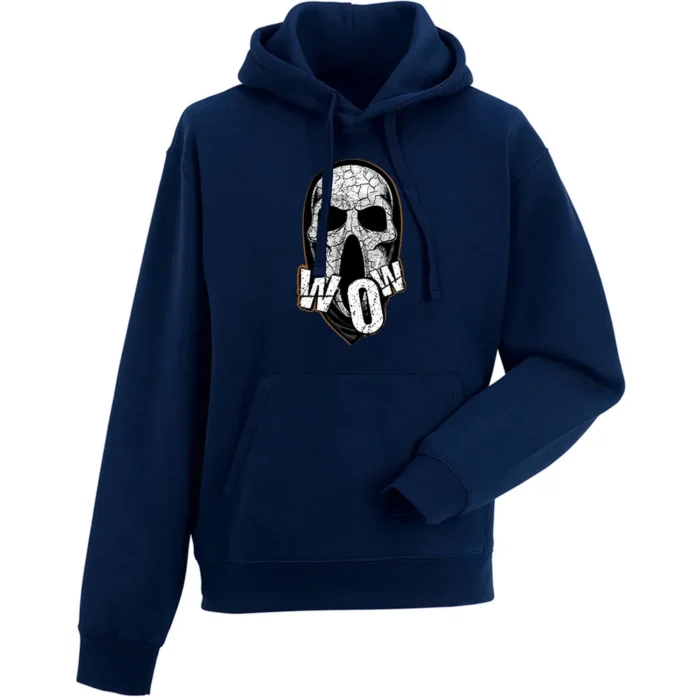 To bluza męska z kapturem z czaszką „Wow Skull” dla fanów alternatywnego stylu i streetwearu — na miasto, do pubu nocne wyjścia.