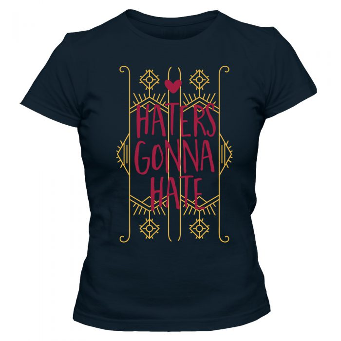 Koszulka damska z nadrukiem. Taliowany krój podkreślający kobiecą sylwetkę.