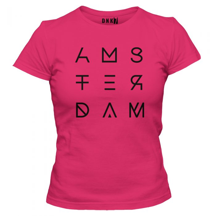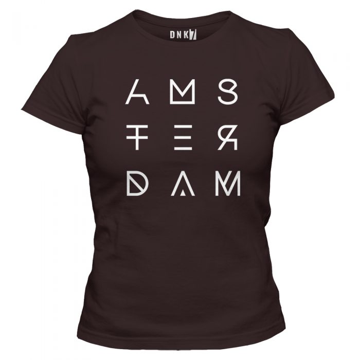 Koszulka z efektownie napisanym słowem Amsterdam.
