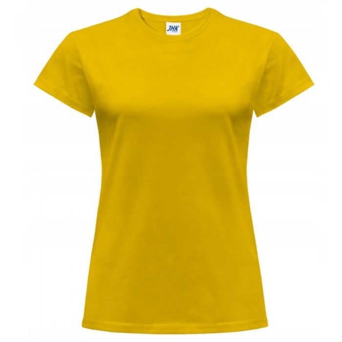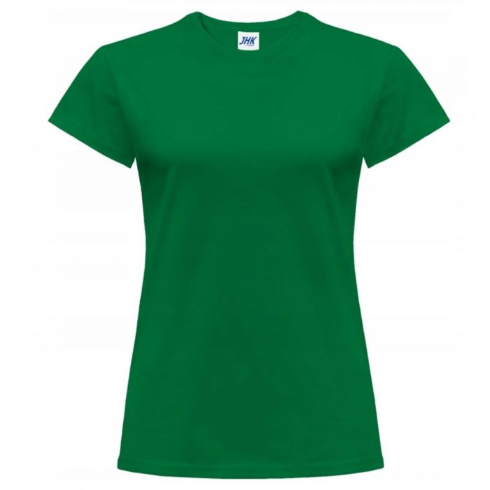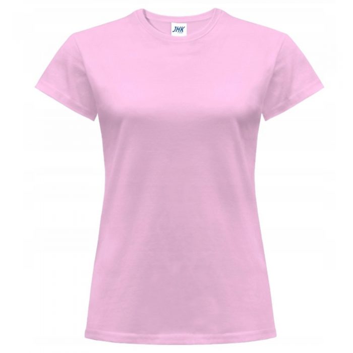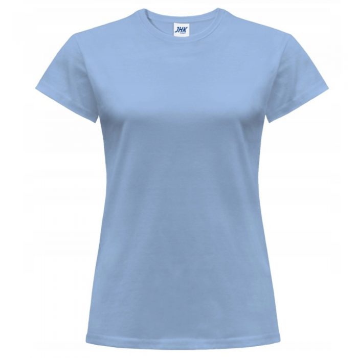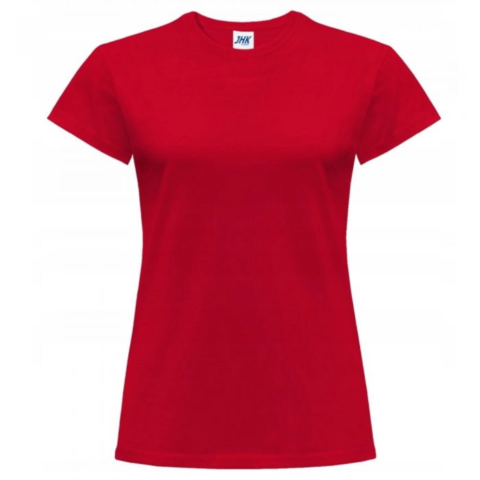 Klasyczna damska koszulka bez nadruku marki JHK. Krój dopasowany do sylwetki. Ściągacz przy szyi. Szwy boczne. Podwójne szwy na ramionach i spodzie koszulki. Łatwo usuwalna metka. 100 % bawełna.