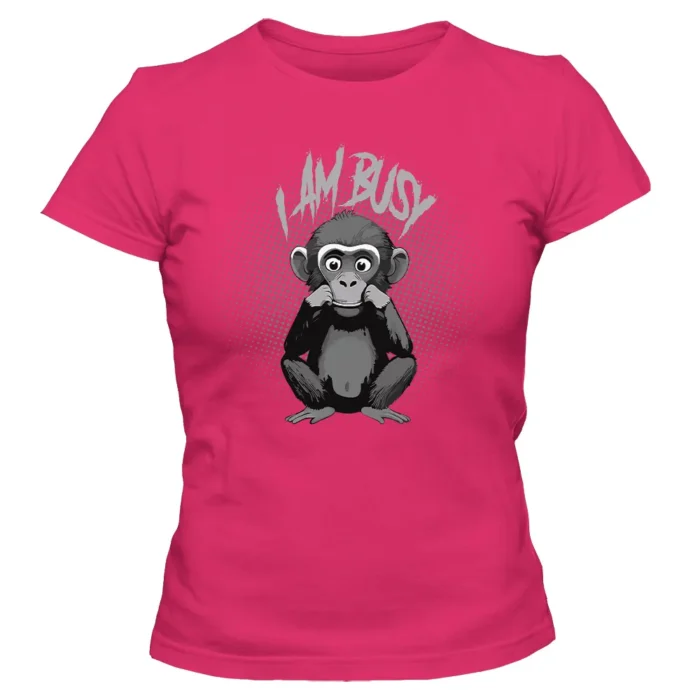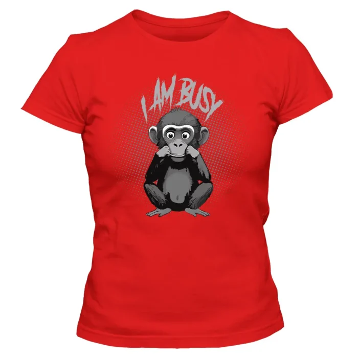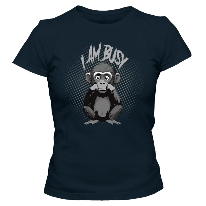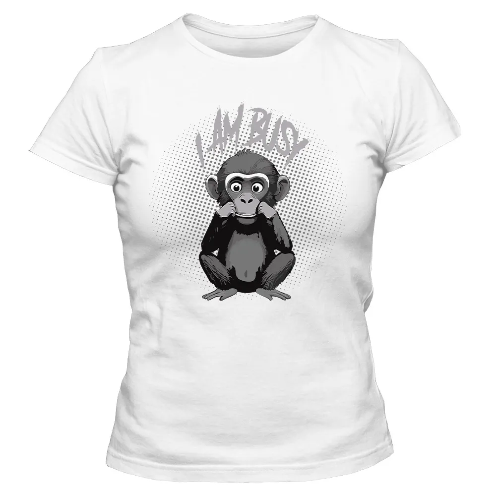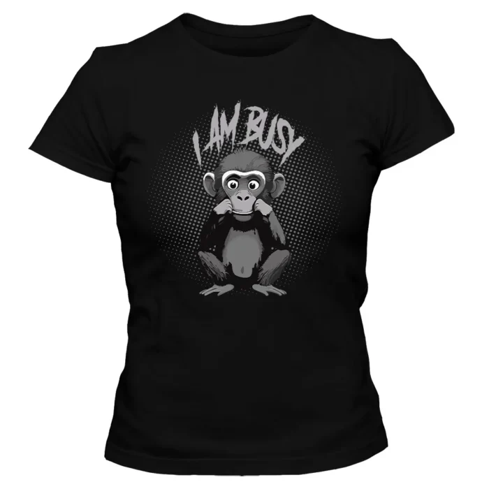 Koszulka damska „Busy Monkey” to zadziorna energia w wersji miejskiej — koszulka damska z nadrukiem małpy, która od razu przyciąga wzrok.
