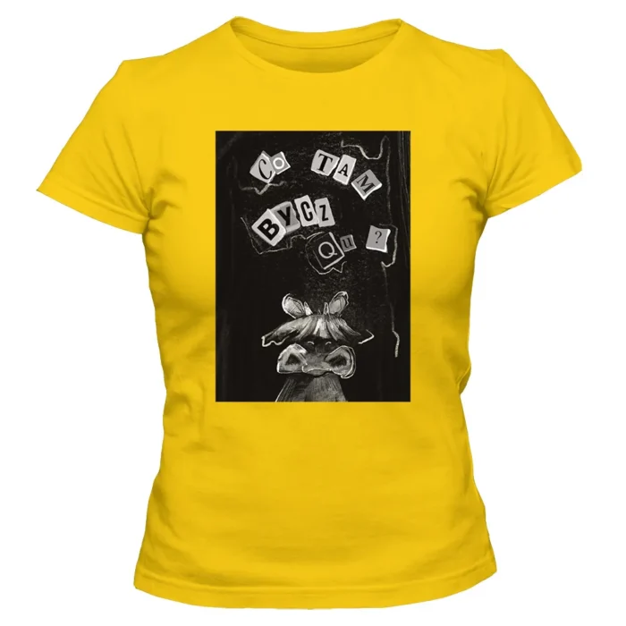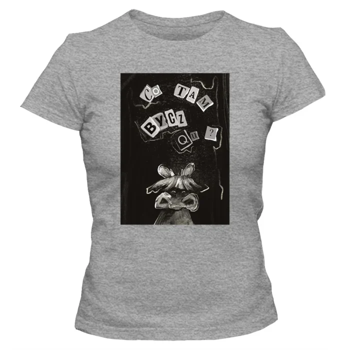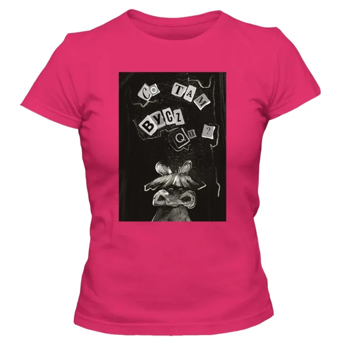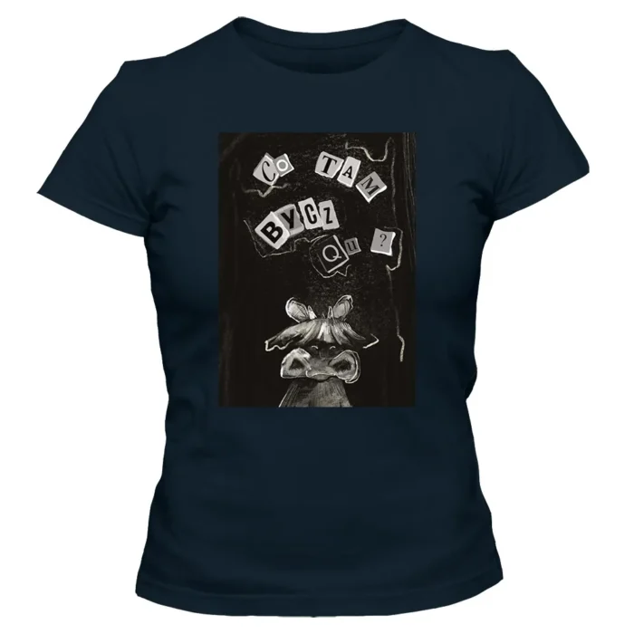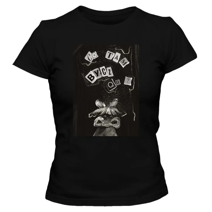 Koszulka damska z grafiką Eli Góreckiej „CO TAM BYCZQ” to przewrotny, komiksowo-kolażowy żart, który od razu wywołuje uśmiech. U góry rozrzucone litery układają się w hasło „Co tam byczQ?”, nadając ilustracji charakter „ransom note” i lekko buntowniczy ton. Niżej szkic byka z rozwianą grzywką i szerokimi chrapami — rysowany kredowo-węglową kreską, pełen surowej energii. Monochromatyczna paleta i mocny kontur sprawiają, że motyw jest czytelny z daleka i świetnie „niesie się” w ruchu. Kredowe smugi i faktury dodają streetartowego klimatu, dzięki czemu wzór ma wyrazisty, miejski charakter. To propozycja dla osób z dystansem, które lubią słowne gry i graficzny humor — na luźne spotkania, imprezy i prezent „z przymrużeniem oka”.