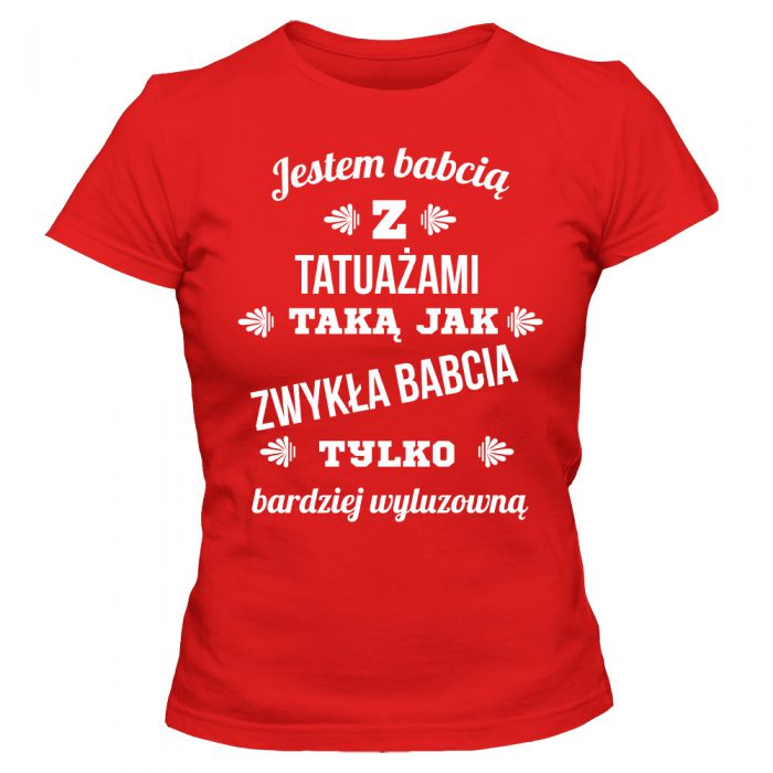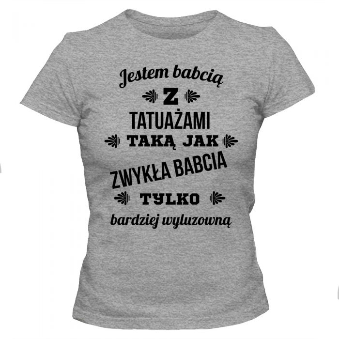 Koszulka JESTEM BABCIĄ Z TATUAŻAMI – Przebojowa babcia zawsze Cię czymś zaskoczy