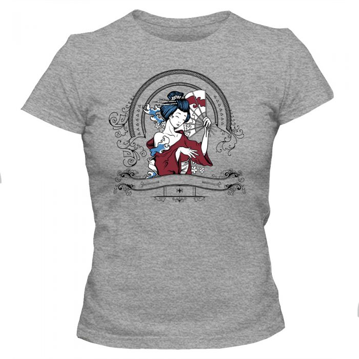 Koszulka damska z nadrukiem. Taliowany krój podkreślający kobiecą sylwetkę.
