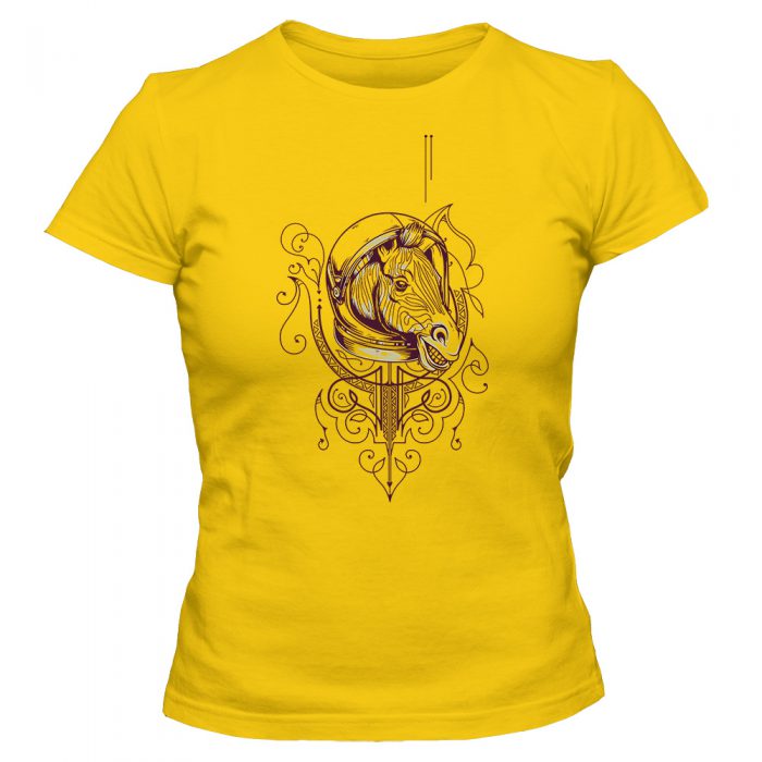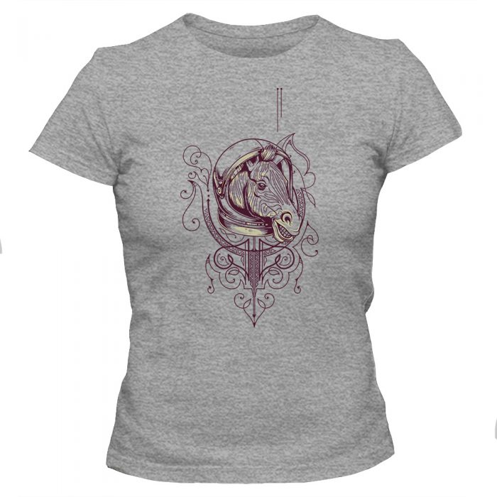 Koszulka damska z nadrukiem. Taliowany krój podkreślający kobiecą sylwetkę.