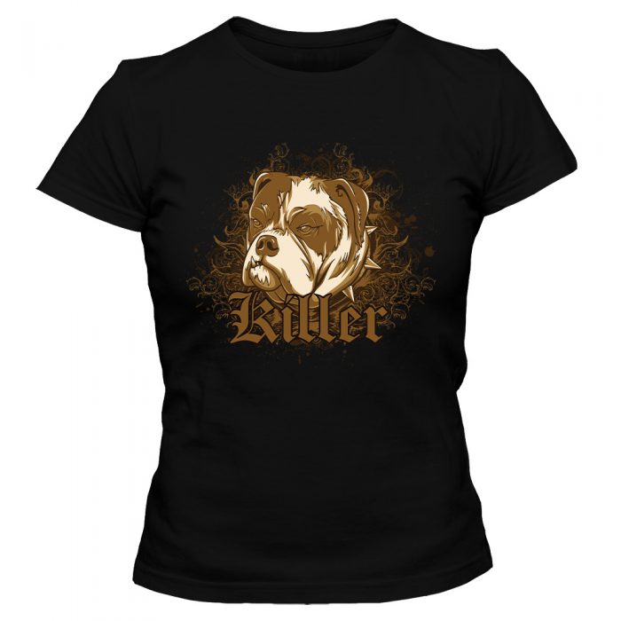 Koszulka damska z nadrukiem. Taliowany krój podkreślający kobiecą sylwetkę.