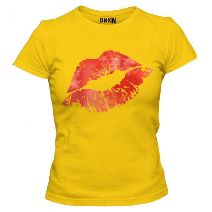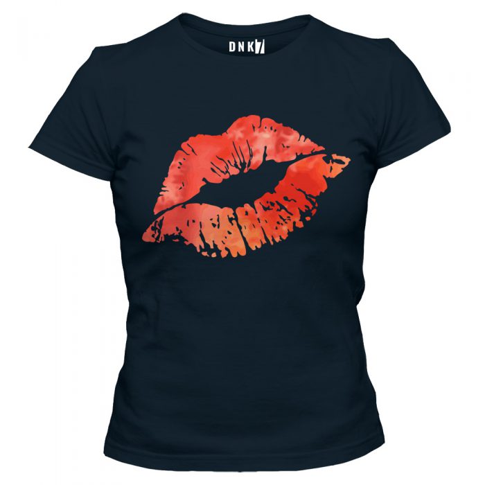 Koszulka z intensywnym nadrukiem kobiecych ust.