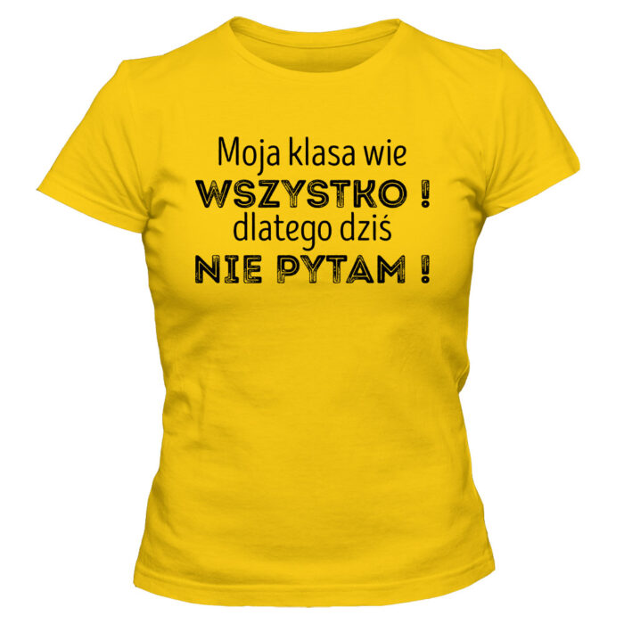 Koszulka damska z sympatycznym nadrukiem. Taliowany krój podkreślający kobiecą sylwetkę.