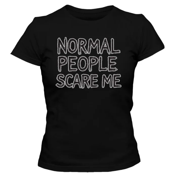 Koszulka damska z grafiką Andrzeja Warty „NORMAL PEOPLE SCARE ME” to typograficzny statement z nutą mrocznego humoru. W centrum wybrzmiewa hasło „NORMAL PEOPLE SCARE ME” zapisane nieregularnym, ręcznie rysowanym liternictwem, które celowo „zgrzyta” i przyciąga wzrok. Piętrowy układ słów i mocny kontur nadają plakatową czytelność, a prosty kontrast czerni z jasnymi polami wzmacnia przekaz. Subtelne przetarcia i delikatne „szumy” dodają lekko grunge’owego charakteru — jak plakat zdjęty ze ściany klubu. Z daleka to krótki, prowokacyjny komunikat; z bliska widać rytm liter i smaczki linii. Koszulka damska z grafiką Andrzeja Warty „NORMAL PEOPLE SCARE ME” mówi wprost: „jestem inna” — prosto, głośno i z autoironią.