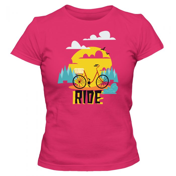 Koszulka damska z nadrukiem. Taliowany krój podkreślający kobiecą sylwetkę.