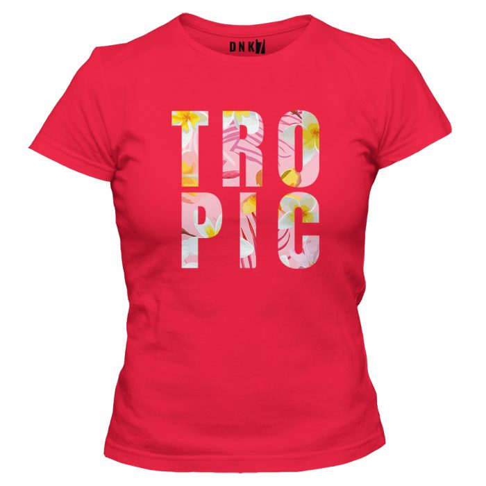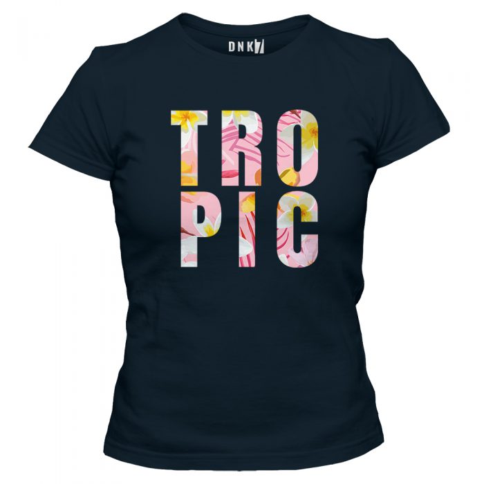 Koszulka z oryginalnym kwiatowym napisem.