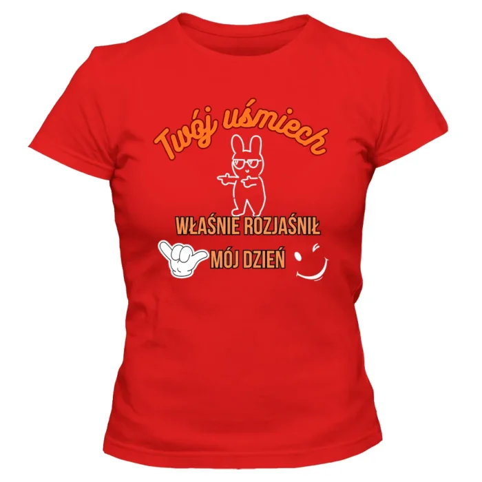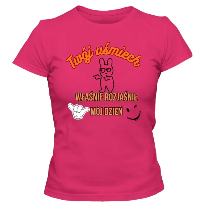 Koszulka damska „TWÓJ UŚMIECH” to minimalizm z dobrą energią — T-shirt z autorskim nadrukiem Ewy Sufryd, który rozświetla codzienne stylizacje. Lekko taliowany krój i okrągły dekolt podkreślają sylwetkę, a czysta, graficzna kreska motywu dodaje nowoczesnego charakteru. Uszyta ze 100% bawełny, jest przyjemna w dotyku i wygodna przez cały dzień. Do wyboru masz siedem kolorów: biały, żółty, różowy, czerwony, szary melanż, granatowy i czarny — łatwo dopasujesz ją do siebie. Dostępna w rozmiarach S–XXL, sprawdzi się jako baza wielu zestawów. Lubisz spójność? Połącz koszulkę z torbą lub kubkiem w tym samym motywie i stwórz mały, codzienny set.