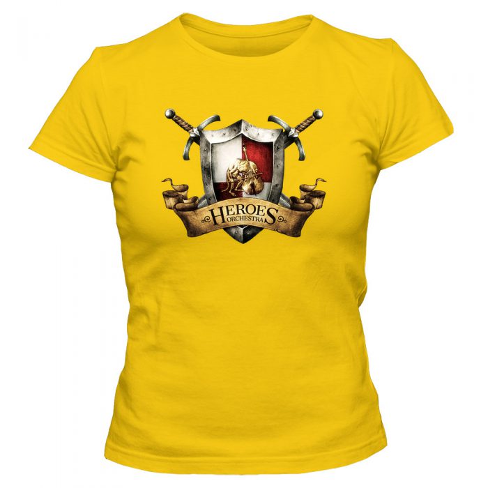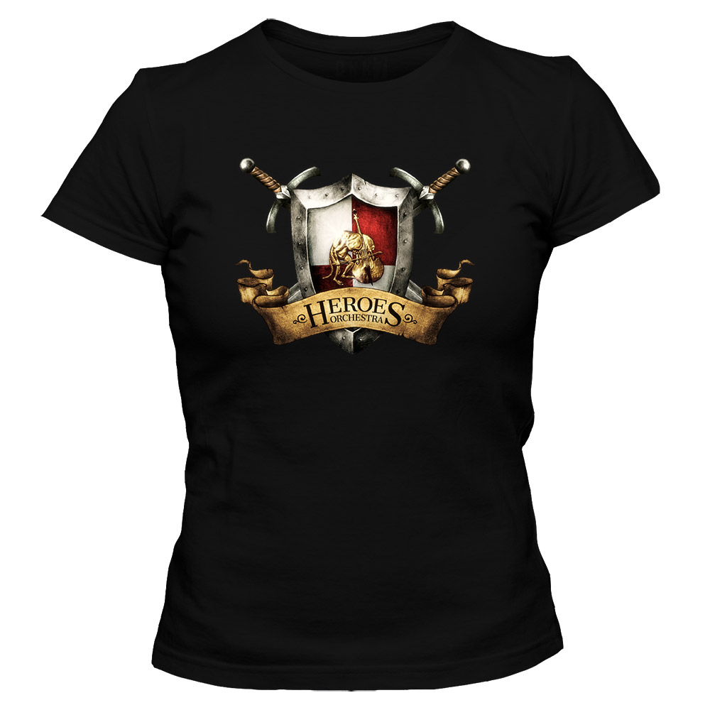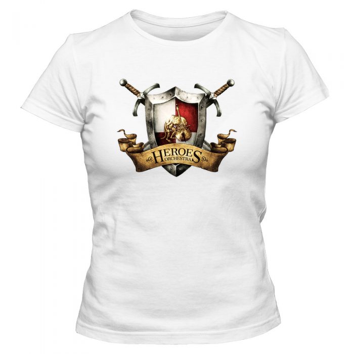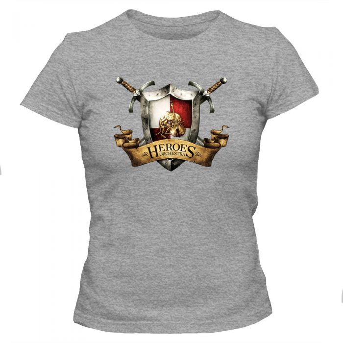 Koszulka damska z nadrukiem logo Heroes Orchestra. Taliowany krój podkreślający kobiecą sylwetkę.