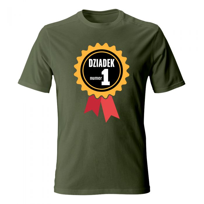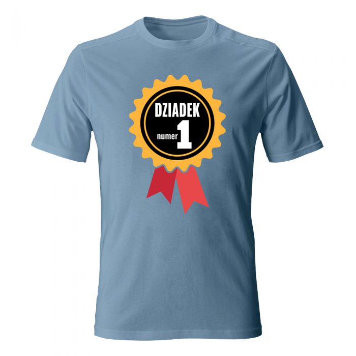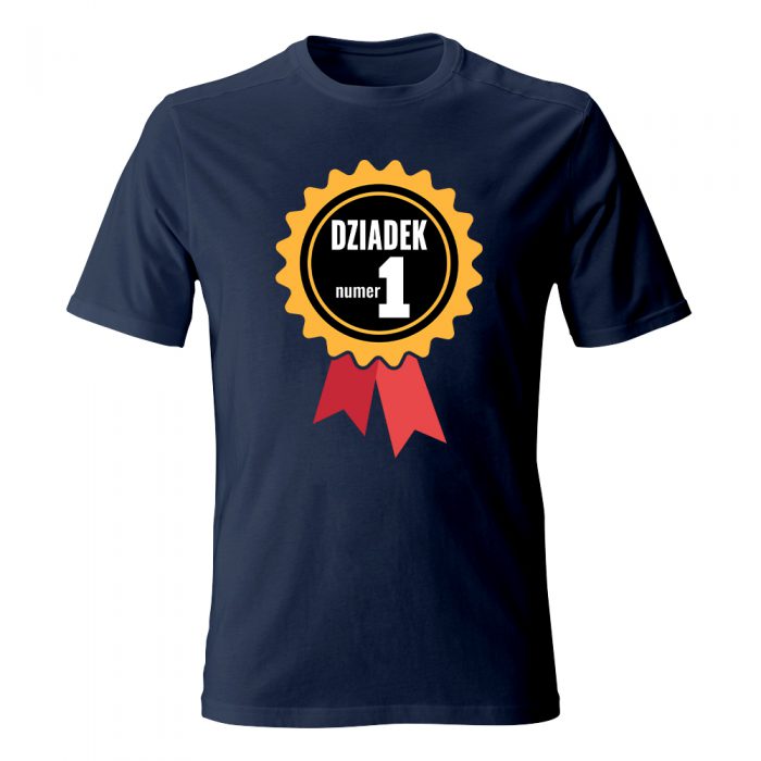 Czy Twój dziadek to absolutny lider w rodzinnym rankingu, który zawsze staje na wysokości zadania? Koszulka „Dziadek numer 1” z grafiką stylizowaną na zwycięską rozetę z czerwonymi wstęgami to oficjalne potwierdzenie jego mistrzowskiej formy. Wyrazisty, kontrastowy nadruk przypominający prestiżową odznakę lub medal jasno komunikuje, że mamy do czynienia z kimś niezastąpionym.