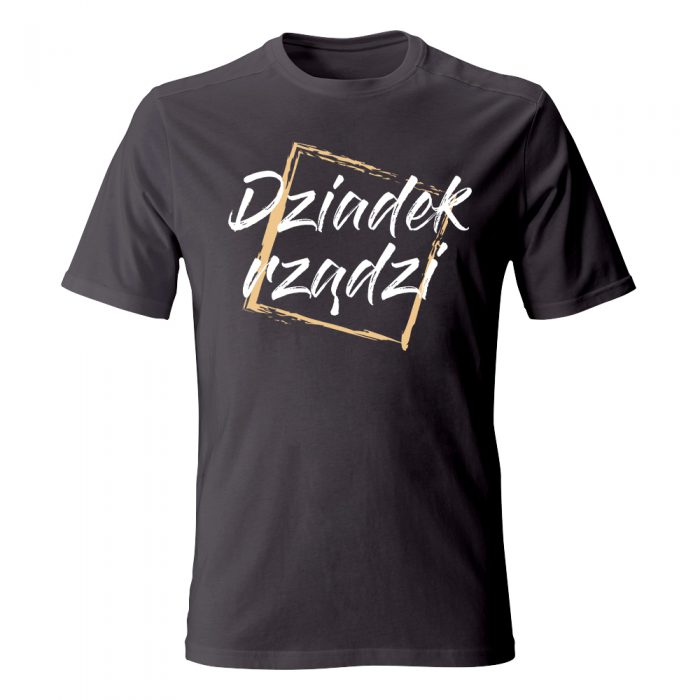 W Waszej rodzinie hierarchia jest jasna i nikt nie ma wątpliwości, do kogo należy ostatnie słowo? Koszulka „Dziadek rządzi” to wesoły i nowoczesny sposób na podkreślenie autorytetu głowy rodu. Artystyczny nadruk, przypominający pociągnięcia pędzla, z czarnym napisem wpisanym w niedbałą, żółtą ramkę, nadaje całości luźnego, designerskiego charakteru.