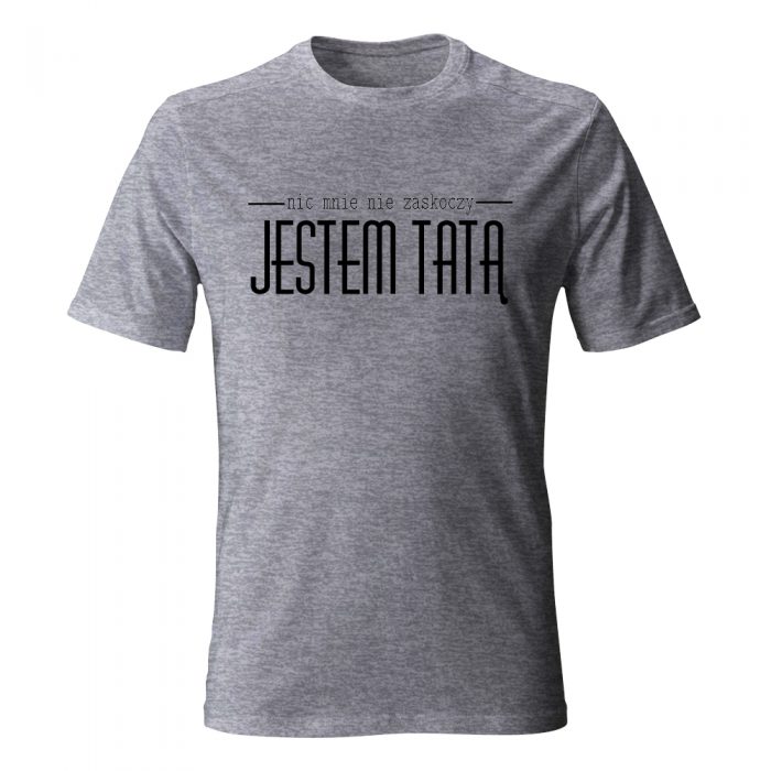 Podaruj swojemu tacie koszulkę z nadrukiem Jestem tatą, nic mnie nie zaskoczy, która zostanie z nim przez długi czas.