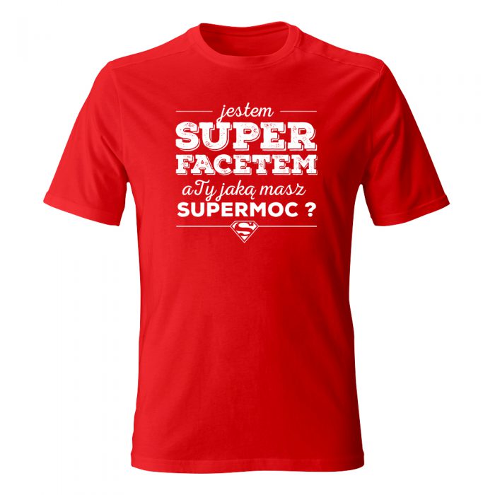 Koszulka męska JESTEM SUPER FACETEM, A TY JAKĄ MASZ SUPERMOC