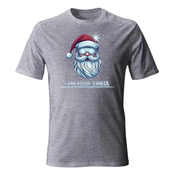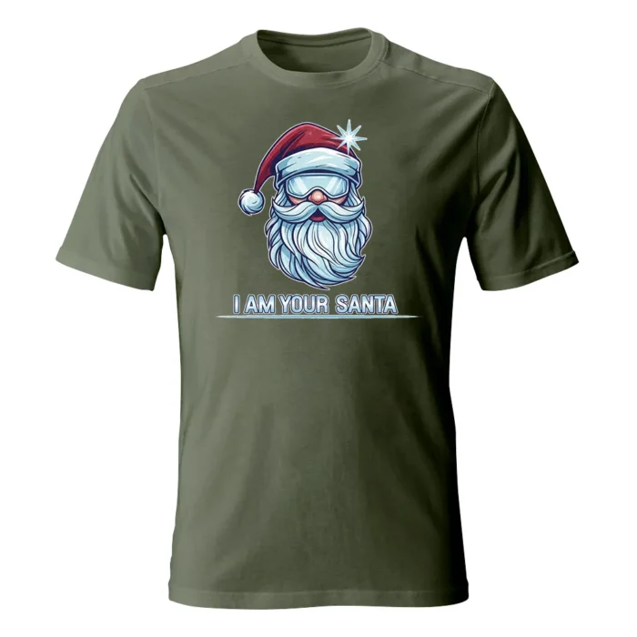 Koszulka męska z grafiką Andrzeja Warty „I AM YOUR SANTA” łączy świąteczny klimat z buntowniczym humorem. W centrum widzisz brodatego Mikołaja w okularach przeciwsłonecznych, z charakterystyczną czapką i błyskiem gwiazdki — bardziej rock’n’roll niż grzeczny elf. Lodowe błękity brody kontrastują z czerwienią czapki, a komiksowo-ilustracyjna kreska nadaje całości mocny, plakatowy charakter. Napis „I AM YOUR SANTA” zamyka kompozycję jak punchline, który wywołuje uśmiech od pierwszego spojrzenia. To motyw na świąteczne imprezy, Secret Santa i wszystkie sytuacje, gdy chcesz pokazać dystans i poczucie humoru. Ten motyw występuje także na innych produktach.