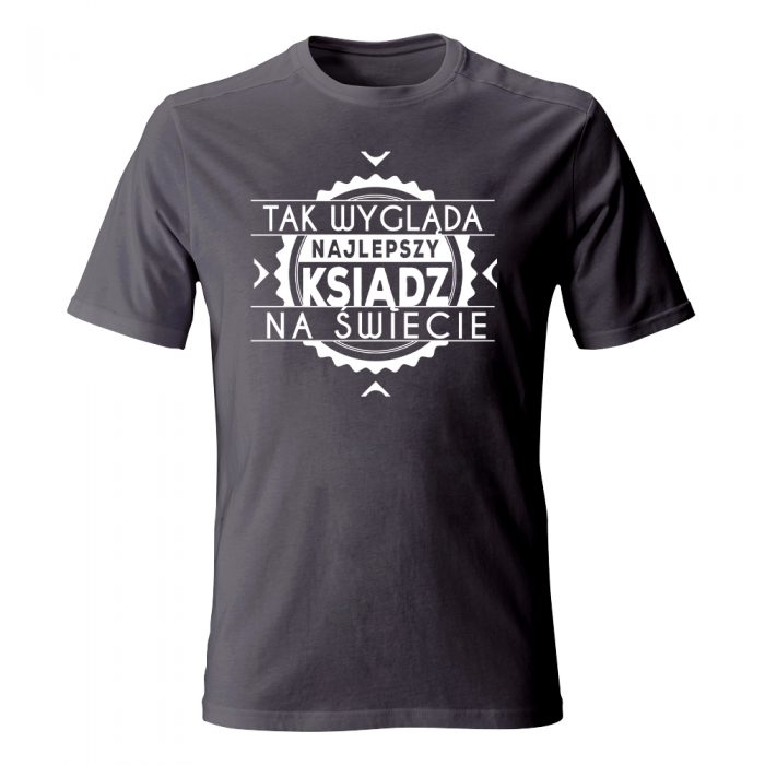 Koszulka męska z nadrukiem, idealna na prezent dla każdego księdza.