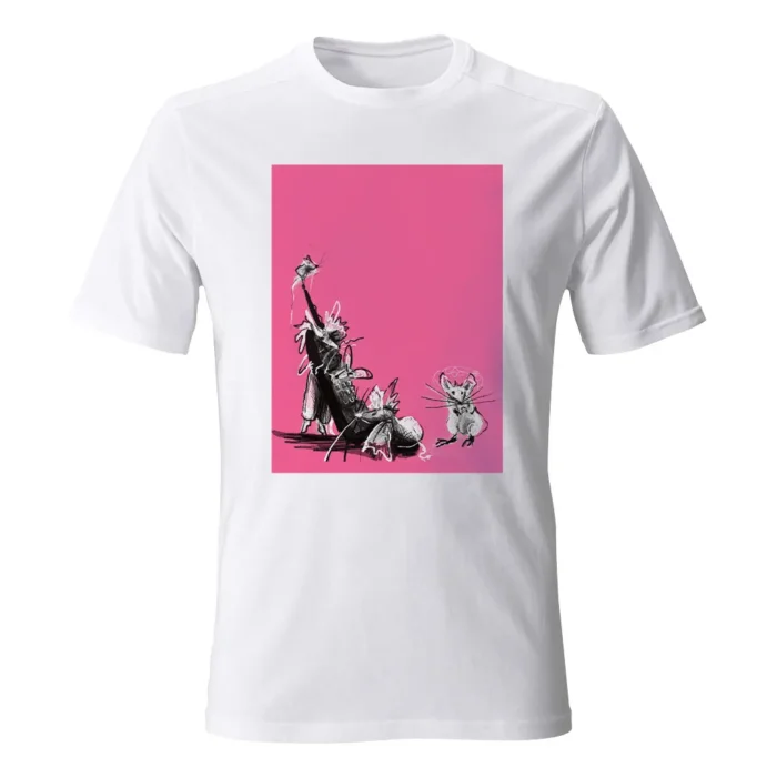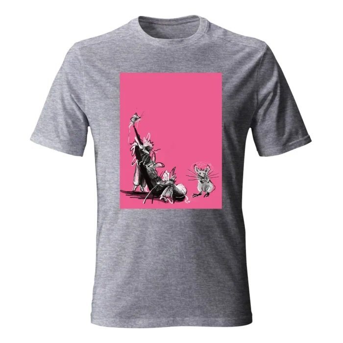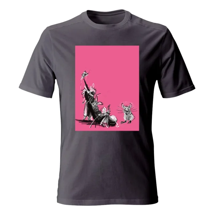 Koszulka męska z grafiką Eli Góreckiej „Myszy” to lekki, humorystyczny kadr w ilustracyjnej odsłonie. W centrum zwinne myszki uchwycone pewną, kaligraficzną kreską — długie ogonki i szybkie linie ruchu nadają scenie tempo. Oszczędna paleta i wyrazisty kontur zapewniają plakatową czytelność, a z bliska widać smaczki rysunku: drobne faktury, przetarcia i migotliwe „whiskers”. Kompozycja ma świetny rytm: bohaterowie prowadzą wzrok po kadrze jak w krótkiej, niemej animacji. To motyw dla miłośników zwierzaków, grafiki i odrobiny autoironii — działa i na co dzień, i w miejskich stylizacjach z dystansem. Koszulka męska z grafiką Eli Góreckiej „Myszy” dodaje outfitowi lekkości i uśmiechu bez zbędnych słów.