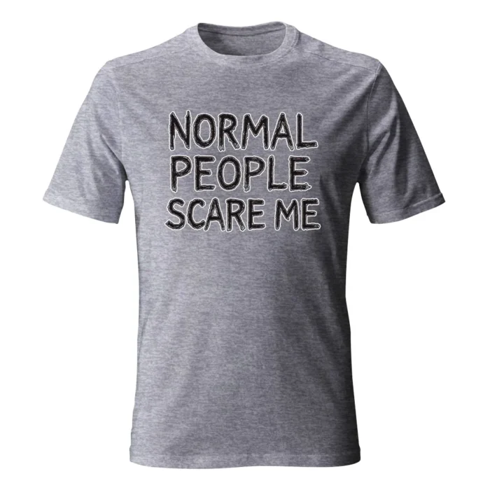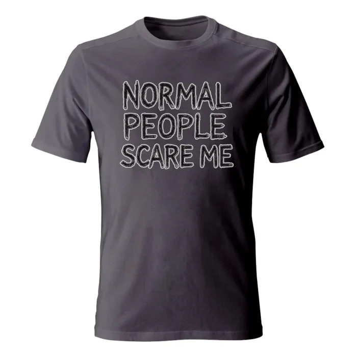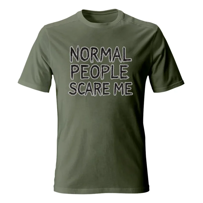 Koszulka męska z grafiką Andrzeja Warty „NORMAL PEOPLE SCARE ME” to typograficzny statement z nutą mrocznego humoru. W centrum wybrzmiewa hasło „NORMAL PEOPLE SCARE ME” zapisane nieregularnym, ręcznie rysowanym liternictwem, które celowo „zgrzyta” i przyciąga wzrok. Piętrowy układ słów i mocny kontur budują plakatową czytelność, a prosty kontrast czerni i jasnych pól wzmacnia przekaz. Subtelne przetarcia i delikatne „szumy” dodają lekko grunge’owego charakteru, jak z plakatu zdjętego ze ściany klubu. Z daleka motyw działa jak krótki, prowokacyjny komunikat; z bliska widać smaczki linii i rytm liter. To wybór dla fanów popkultury i autoironii — kiedy chcesz powiedzieć „jestem inny” prosto, głośno i stylowo.