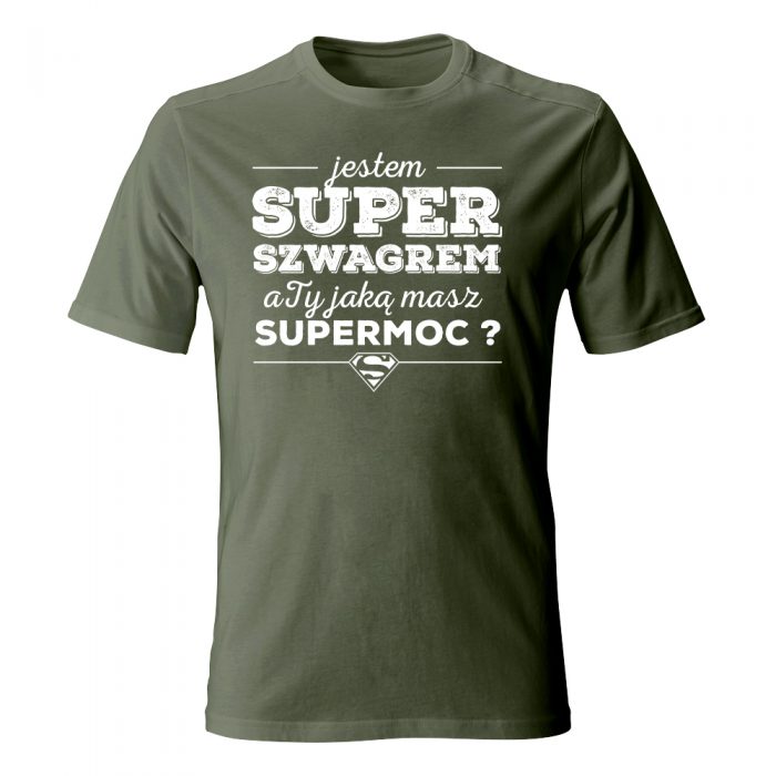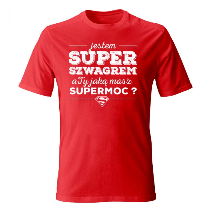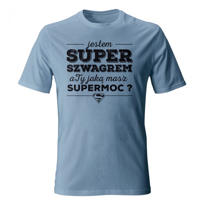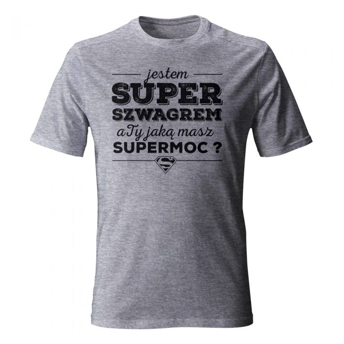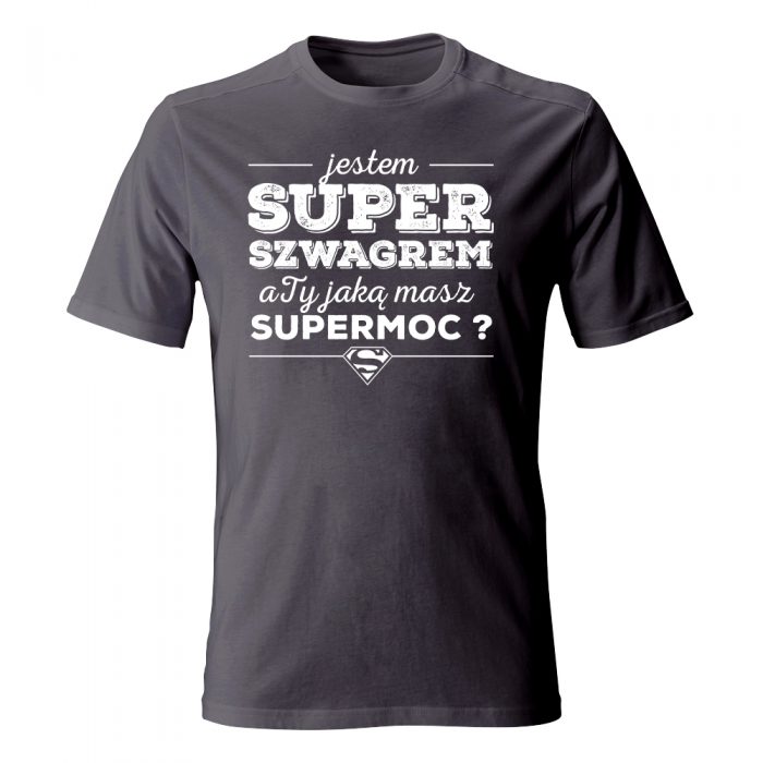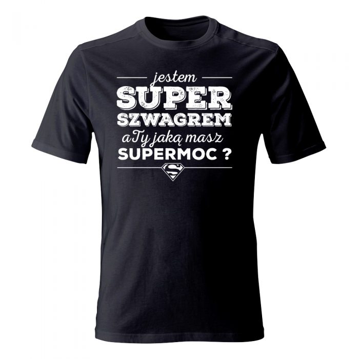 Szwagier o super mocach niczym bajkowy bohater. Czy taki właśnie jest Twój szwagier? Rzeczy niemożliwe załatwia w godzinę, a cuda w trzy dni? Jeśli ma takie zdolności to koniecznie musi chodzić w koszulce JESTEM SZWAGREM, A TY JAKĄ MASZ SUPER MOC.