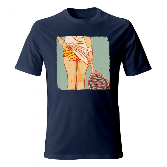 Zabawna koszulka z nadrukiem tenisistki.