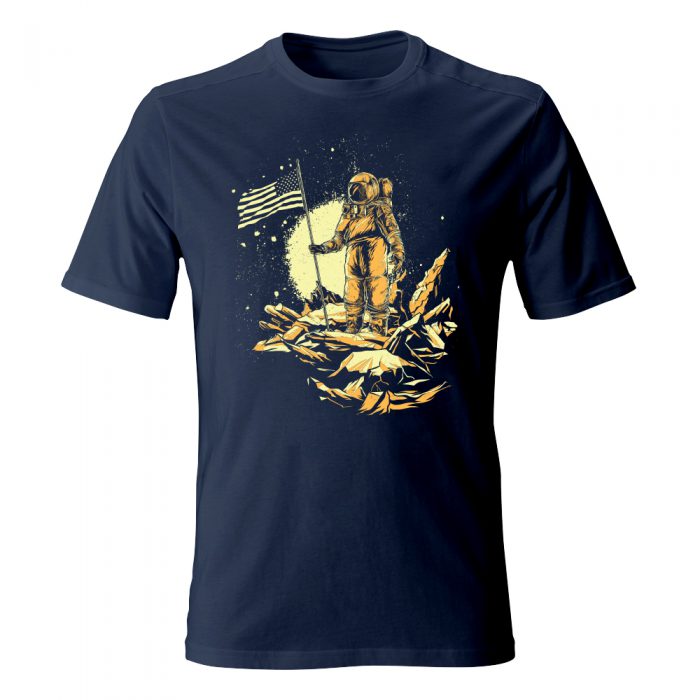Koszulka z nadrukiem przedstawiającym lądowanie na księżycu.