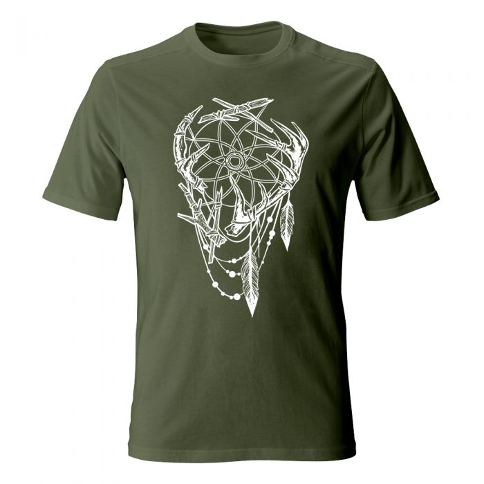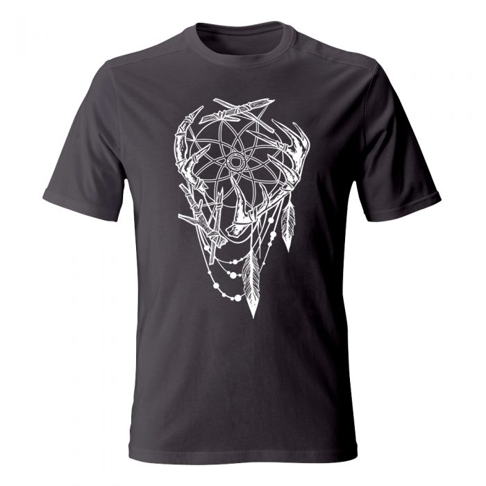 Koszulka z nadrukiem, w którym widoczne są indiańskie motywy.