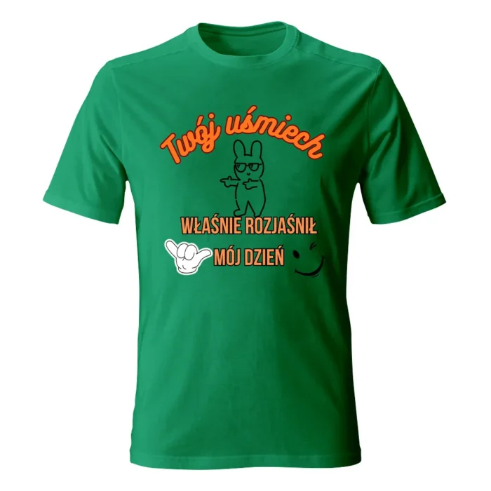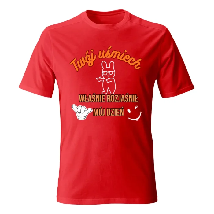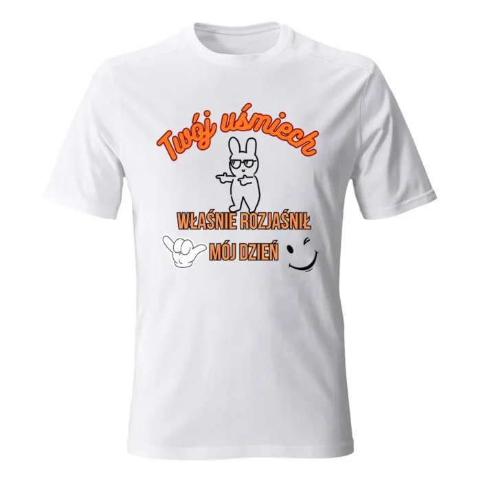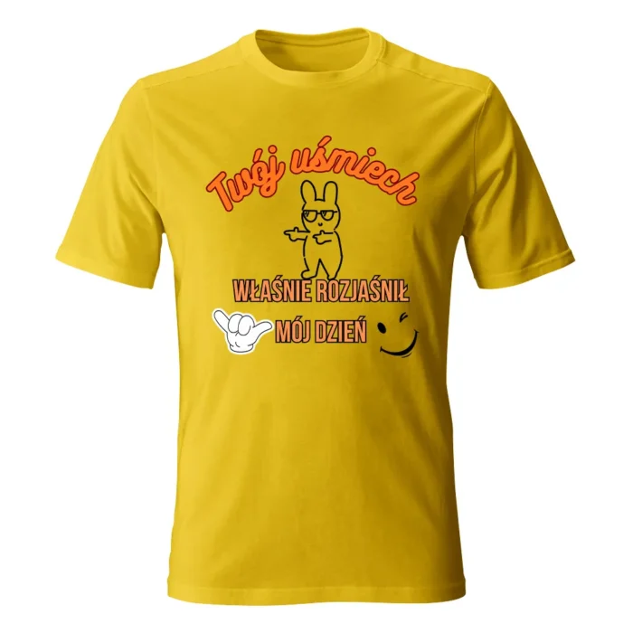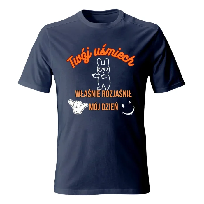 Koszulka męska „TWÓJ UŚMIECH” to minimalizm z dobrą energią — T-shirt z autorskim nadrukiem Ewy Sufryd, który dodaje pozytywny akcent codziennym stylizacjom. Miękka 100% bawełna, okrągły dekolt i brak szwów bocznych zapewniają wygodę i ładne układanie na sylwetce. Dostępna w rozmiarach S–XXL i w wielu kolorach (m.in. biały, żółty, granat, czarny, szary melanż), więc łatwo dobierzesz wersję do siebie. Świetnie łączy się z jeansami i overshirtem, ale równie dobrze gra solo. Lubisz spójność? Połącz T-shirt z torbą lub kubkiem w tym samym motywie i stwórz mały, codzienny set.