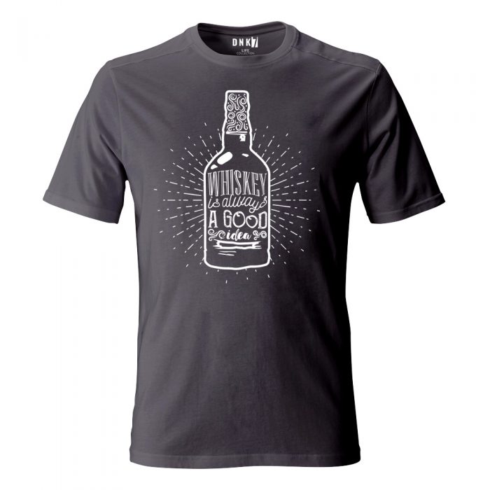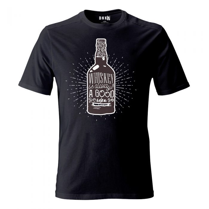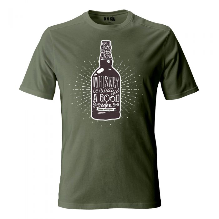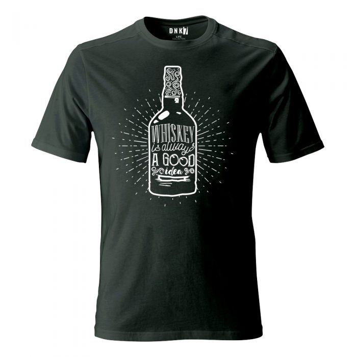 Koszulka z nadrukiem butelki whiskey.