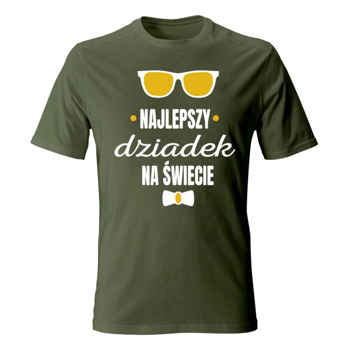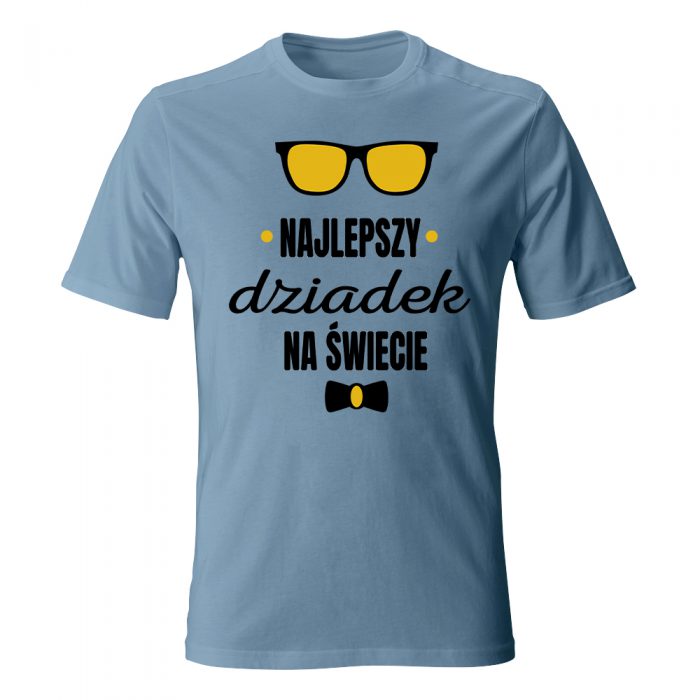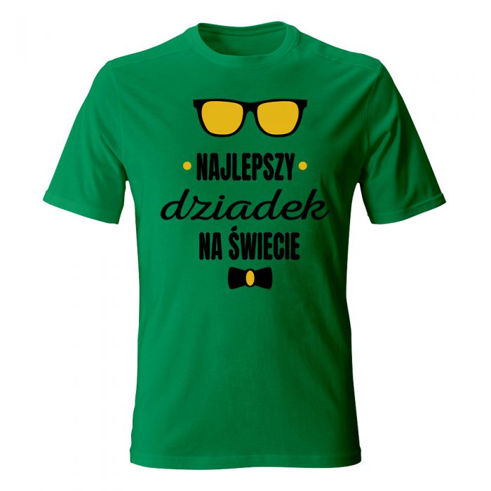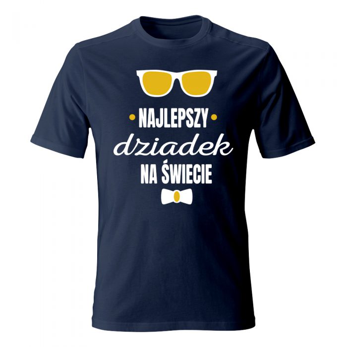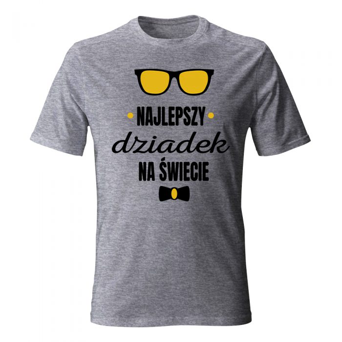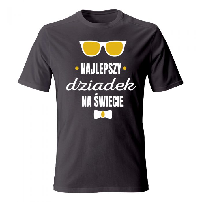 Twój dziadek to ikona stylu, który potrafi połączyć klasyczną elegancję z odrobiną szaleństwa? Koszulka „Najlepszy Dziadek na świecie” z motywem żółtych okularów i czarnej muszki to strzał w dziesiątkę dla seniora z charakterem. Kontrastowe połączenie czerni i słonecznej żółci tworzy nowoczesny, bardzo pozytywny wzór, który od razu przywodzi na myśl uśmiech i dobrą zabawę.