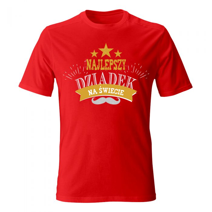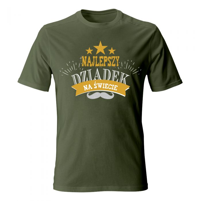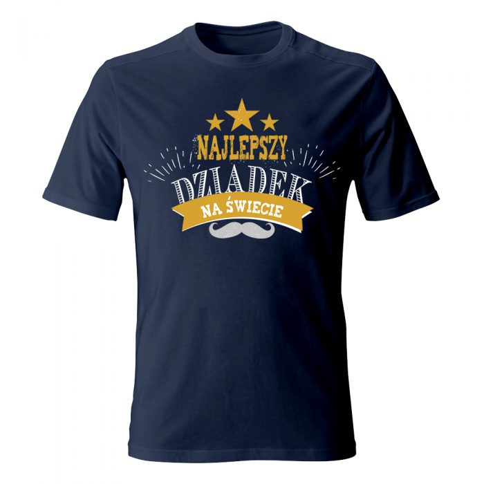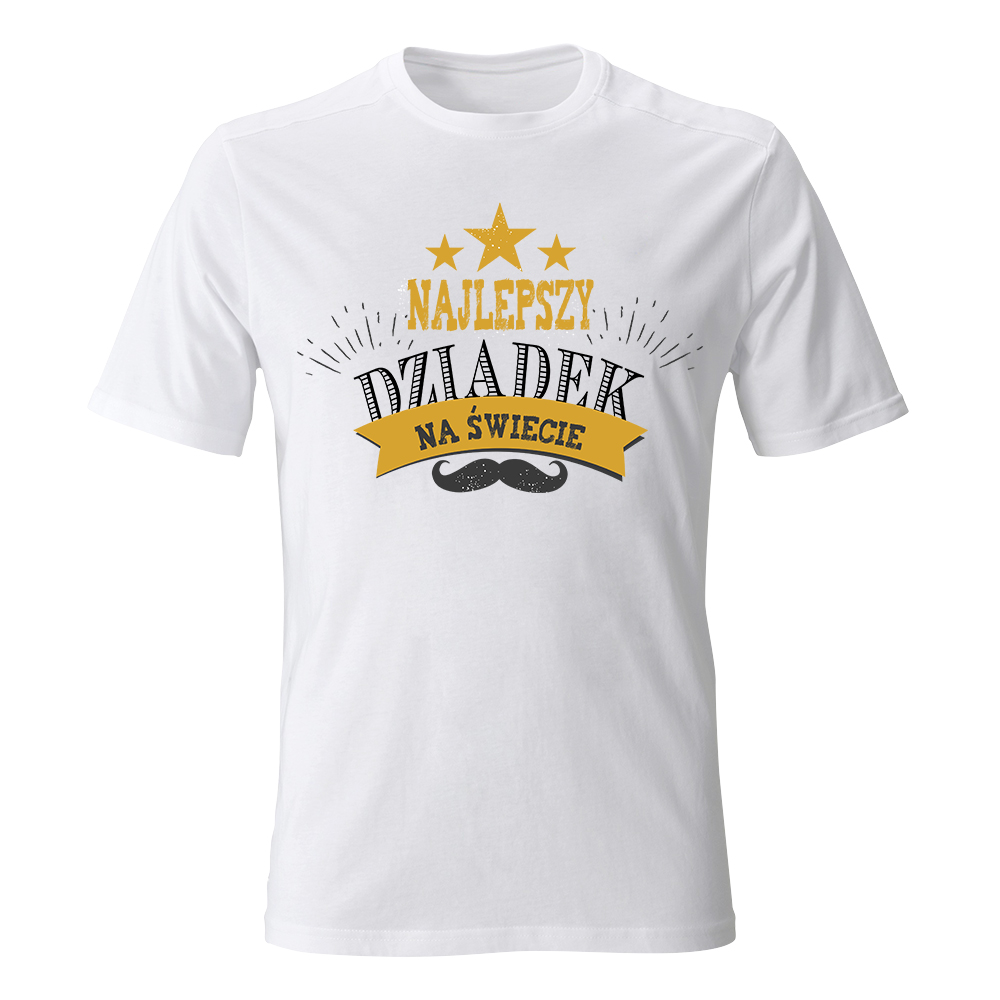 Twój dziadek to prawdziwa gwiazda, która każdego dnia rozświetla życie całej rodziny? Koszulka „Najlepszy Dziadek na świecie” z motywem trzech złotych gwiazd to wyróżnienie godne hollywoodzkiej alei sław. Projekt łączy styl retro z nowoczesnym designem – ozdobna typografia, złota szarfa z dedykacją oraz klasyczny wąs tworzą kompozycję pełną blasku i charakteru.