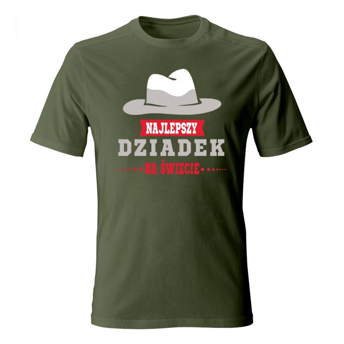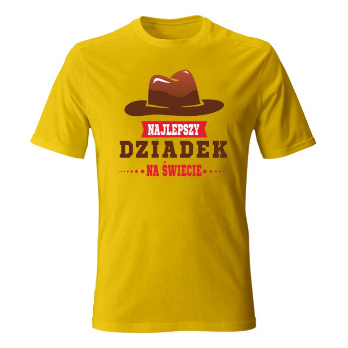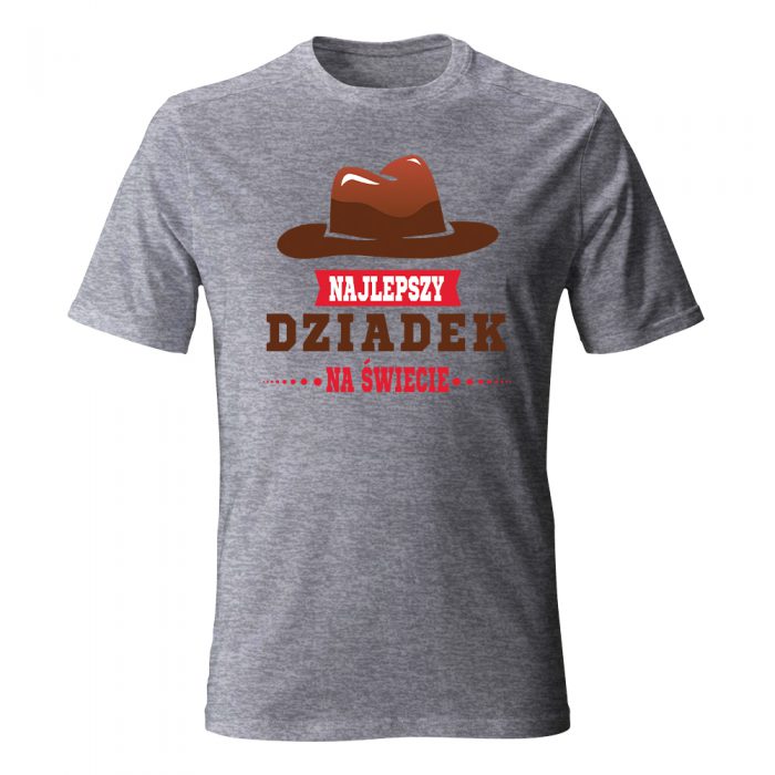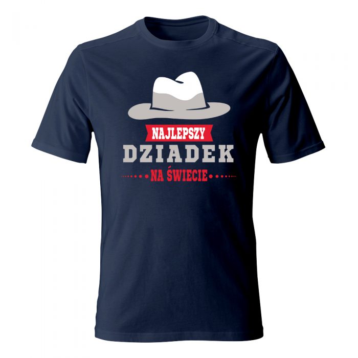 Twój dziadek to mężczyzna z klasą, przed którym – dosłownie i w przenośni – chyli się czoła? Koszulka „Najlepszy Dziadek na świecie” z grafiką stylowego kapelusza to wyraz najwyższego szacunku i uznania, czyli idealne „chapeau bas” dla głowy rodziny. Brązowy kapelusz typu fedora, kojarzący się z elegancją i przygodą (może trochę w stylu Indiany Jonesa?), w połączeniu z czerwoną szarfą i wyraźnym napisem, tworzy kompozycję pełną męskiego charakteru.