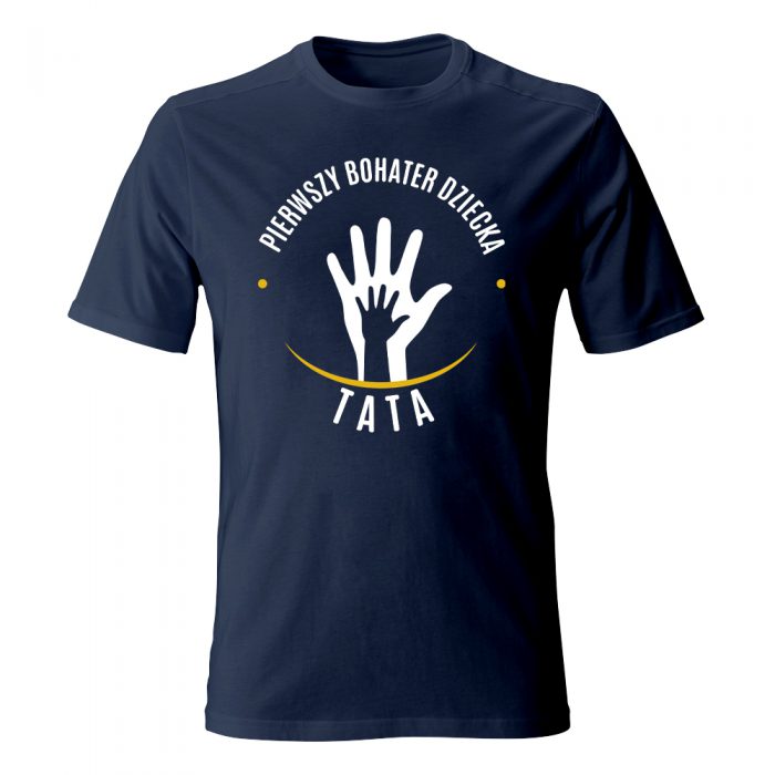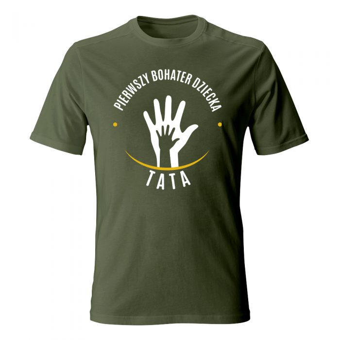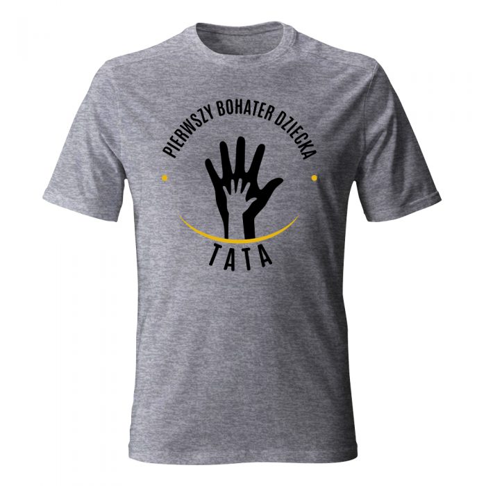 Podaruj swojemu tacie koszulkę z nadrukiem Pierwszy bohater dziecka, która zostanie z nim przez długi czas.