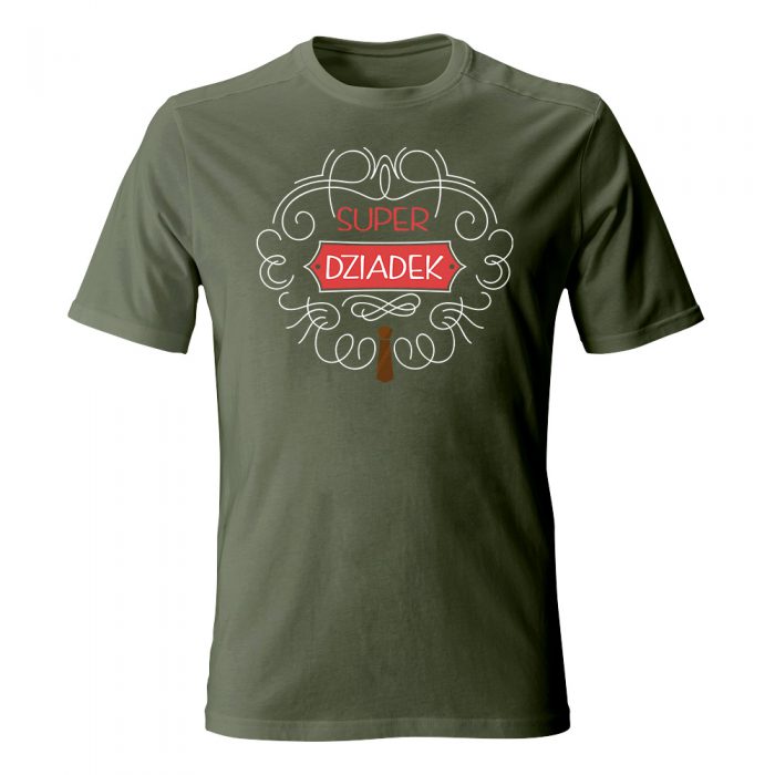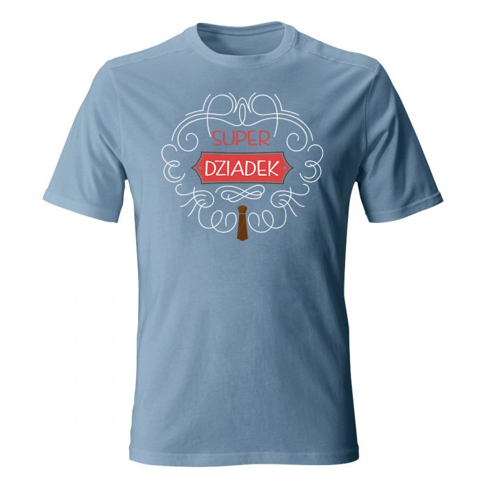 Twój dziadek to człowiek o nienagannych manierach, który jednocześnie posiada supermoce rozwiązywania każdego rodzinnego problemu? Koszulka „Super Dziadek” z finezyjnym, ozdobnym motywem graficznym to idealne połączenie elegancji z wyrazem podziwu. Centralnie umieszczony napis na czerwonym tle, otoczony stylowymi, turkusowymi ornamentami i zwieńczony subtelnym symbolem krawata, tworzy kompozycję godną prawdziwego dżentelmena.