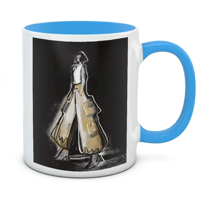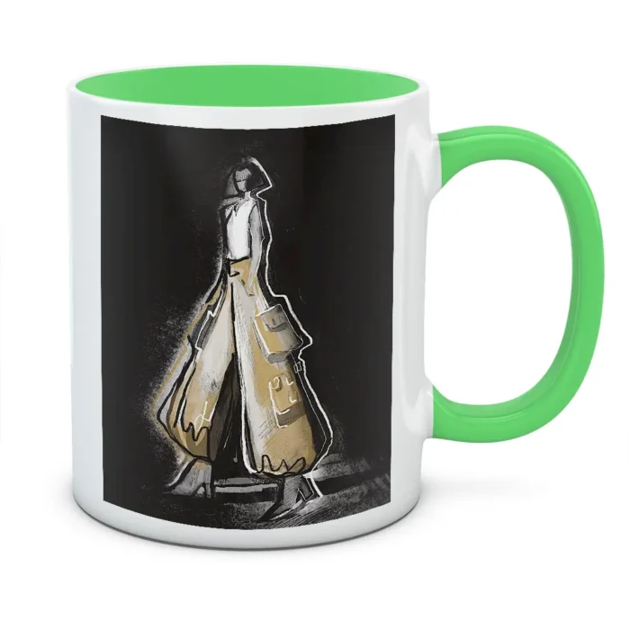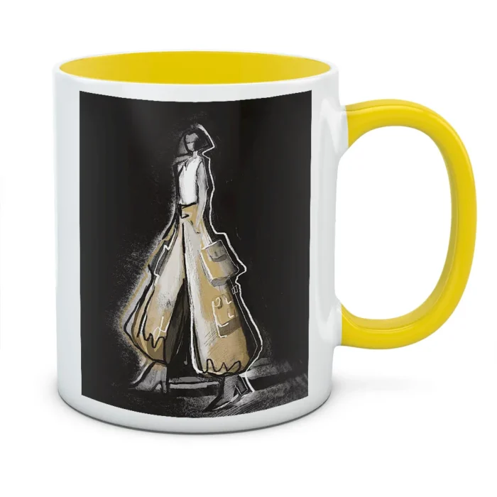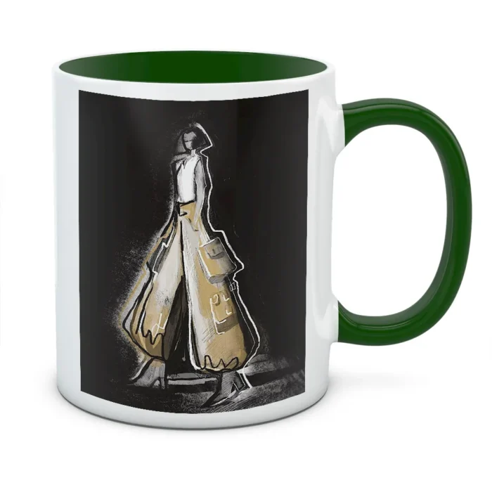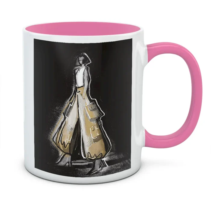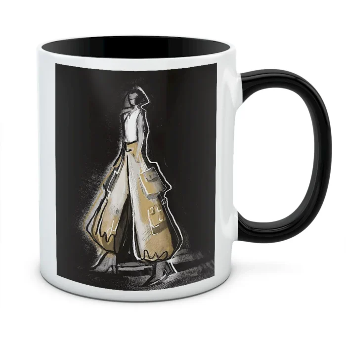 Kubek z grafiką Eli Góreckiej „CARGO PANTS” to projektowy akcent o wyraźnie streetwearowym charakterze. Na obwodzie kubka widać techniczny szkic spodni cargo z przeskalowanymi kieszeniami, szlufkami i zaznaczonymi przeszyciami, poprowadzony pewną, kaligraficzną kreską. Oszczędna paleta i mocny kontur nadają ilustracji plakatową czytelność, która „trzyma” wzrok przy każdym obrocie kubka. Z bliska odkryjesz konstrukcyjne smaczki: linie cięć, stebnowania i fałdy budujące wrażenie objętości. Kompozycja jest czysta i graficzna, a jednocześnie emanuje energią szkicu prosto z pracowni projektanta. Idealny dla miłośników mody, krawiectwa i minimalistycznej ilustracji — gdy chcesz dodać codziennemu rytuałowi kawy nowoczesnego, „atelierowego” pazura.