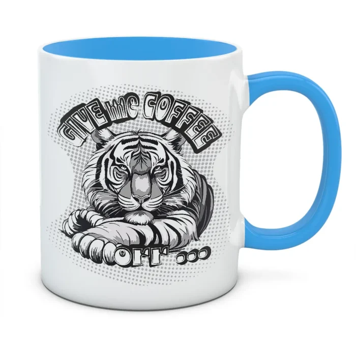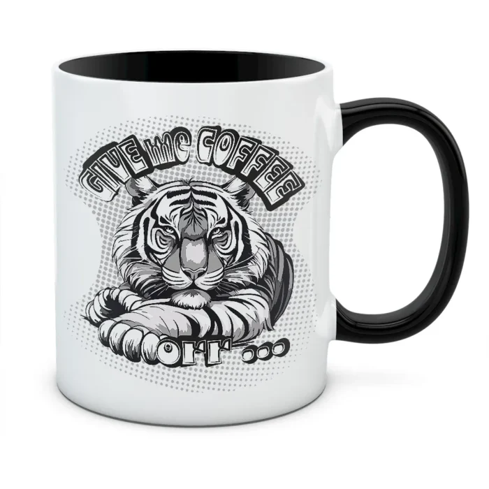 Kubek z grafiką Krzysztofa Kąska „COFFEE TIGER” to esencja kawowej energii w ilustracyjno-plakatowym ujęciu. Na froncie drapieżny tygrys, którego prążki przechodzą w wiry parującej kawy, a obok pojawiają się filiżanka, ziarna i aromatyczne smugi. Mocny czarny kontur i komiksowa dynamika sprawiają, że wzór jest czytelny i wyrazisty przy każdym obrocie kubka. Paleta łączy kawowe brązy i karmel z ciepłym oranżem futra, budując kontrast, który „budzi” już od pierwszego łyku. Motyw ma wyraźny „poranny” vibe — dla kawoszy, baristów i nocnych marków, którzy żyją w rytmie espresso. Ten wzór występuje także na innych produktach.