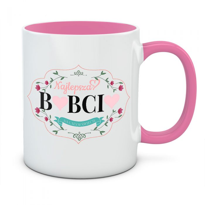 - Nietypowy styl: Zamiast standardowych liter, w słowie „BABCI” pojawiły się różowe serca, co nadaje całości lekkości i unikalnego charakteru.