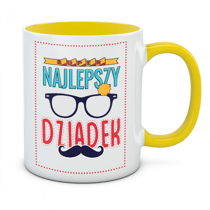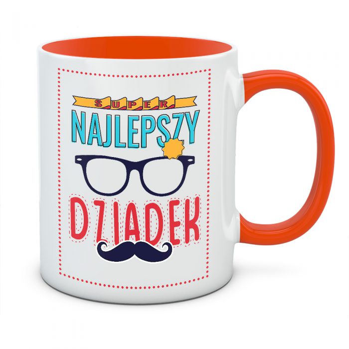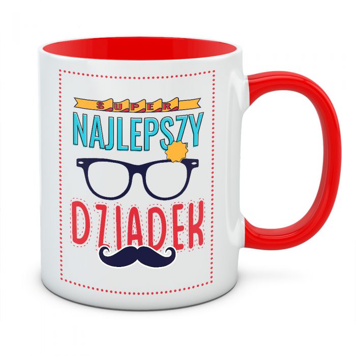 Twój dziadek to człowiek, przy którym nie sposób się nudzić? Kubek „Super Najlepszy Dziadek” to eksplozja kolorów i radości, która idealnie pasuje do jego pogodnego usposobienia. Komiksowa, nieco zwariowana stylistyka z odznaką i okularami sprawia, że ten kubek wygląda jak wesoły plakat lub okładka magazynu o superbohaterach codzienności.